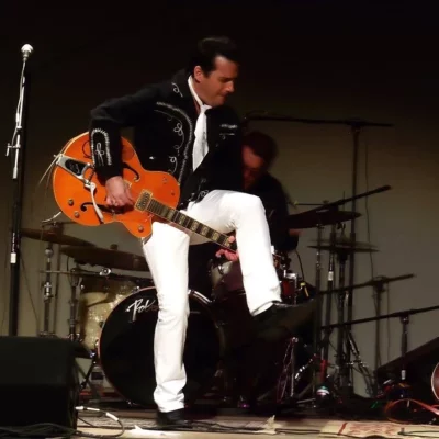 Rockabilly Hall of Fame inductee, recording artist and son of legendary Bobby Vee, Robby Vee has been performing on the biggest stages across the globe for some time now, modernizing the timeless genre of rock n’ roll and rockabilly with a clear vision. He has learned from and shared stages with iconic musicians from James Burton to Carl Perkins, Bo Diddley, Albert Lee, Little Richard, the Everly Brothers, Sir Paul McCartney, Eric Clapton, Dion, The Righteous Brothers, Buddy Holly’s Crickets, Dick Clark and his ‘Caravan of Stars Rock ‘N’ Roll Show’, his father, 60’s pop rocker Bobby Vee and many more.