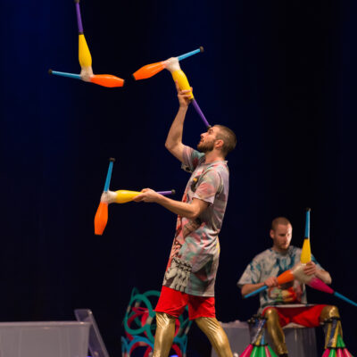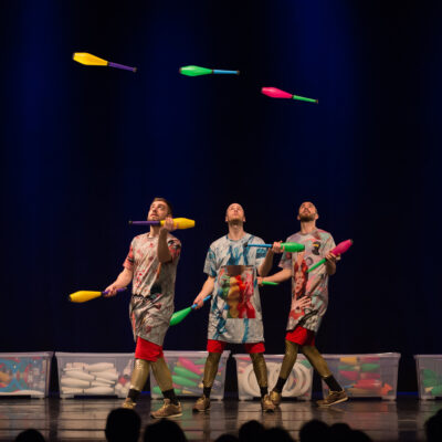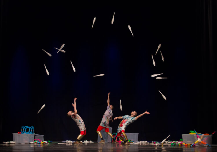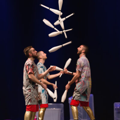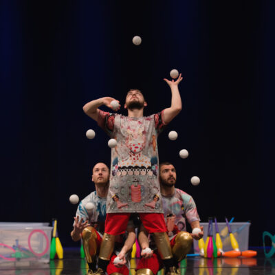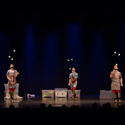 Water on Mars is a show of pure juggling, built using juggling’s natural drama, humor, and airborne geometry. The performance was created by three American/Swedish jugglers who have each spent over 15 years researching how to combine juggling with music, acrobatics, snow, chocolate, tap dance, and 400 roles of tape.